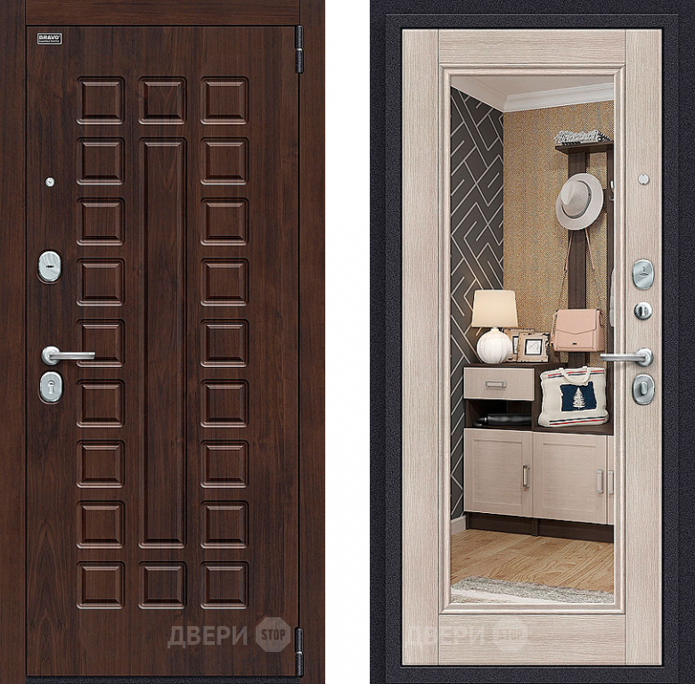 Входная металлическая Дверь Bravo Оптим Урбан с зеркалом Cappuccino Veralinga в Старой Купавне 860х2050 мм
