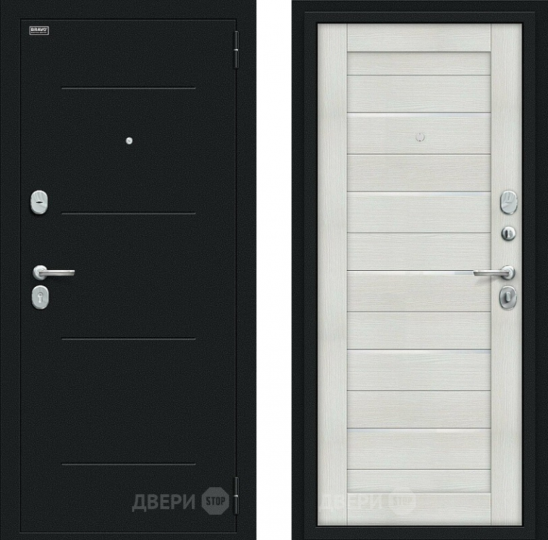 Входная металлическая Дверь Bravo Техно Kale Букле черное/Bianco Veralinga в Старой Купавне 860х2050 мм