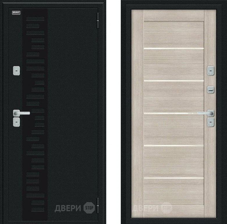 Входная металлическая Дверь Bravo Thermo Техно Декор Букле черное/Cappuccino Veralinga в Старой Купавне 860х2050 мм