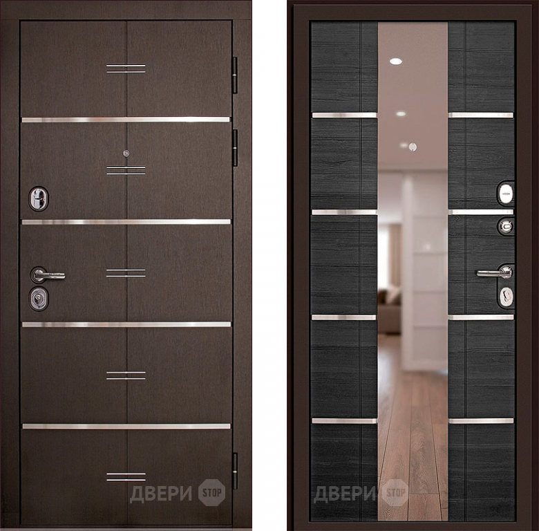 Входная металлическая Дверь (Дверной Континент) Савона с зеркалом Венге в Старой Купавне 860х2050 мм