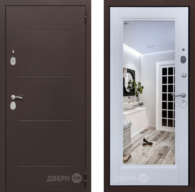 Входная металлическая Дверь Престиж 100 с зеркалом Медь/Лиственница белая в Старой Купавне 860х2050 мм