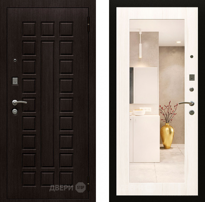 Входная металлическая Дверь Райтвер Сенат-лайф с зеркалом Беленый Дуб в Старой Купавне 860х2050 мм