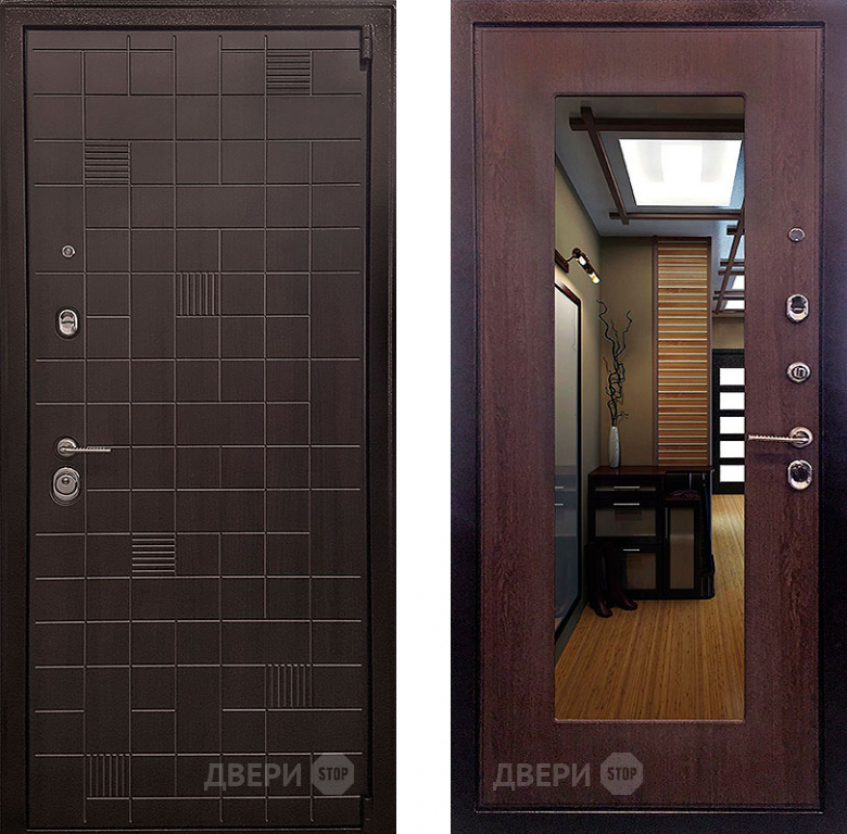 Входная металлическая Дверь Ратибор Силуэт зеркало 3К Венге капучино в Старой Купавне 860х2050 мм
