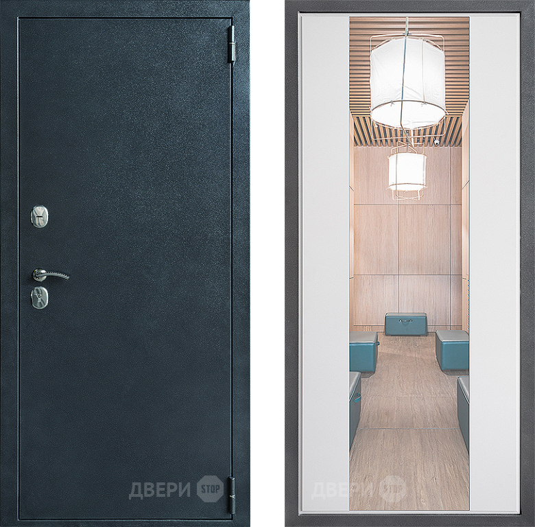 Входная Дверь Дверной континент ДК-70 Дизайн ФЛЗ-1 Зеркало Белый софт 860x2050 мм