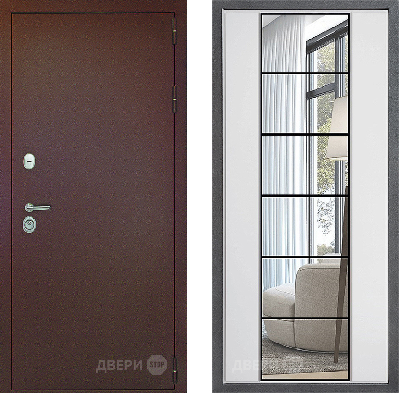 Входная Дверь Дверной континент Рубикон Медь Дизайн ФЛЗ-2 Зеркало Белый софт 960x2050 мм