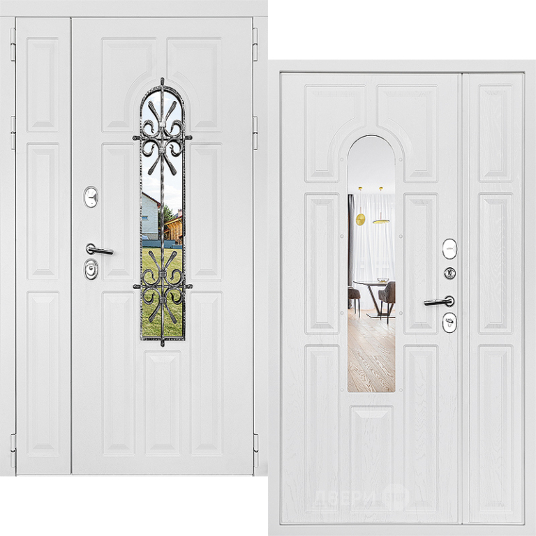 Входная металлическая Дверь Дверной Континент Лион Двустворчатая Белая в Старой Купавне 1100, 1200, 1300 * 2200мм