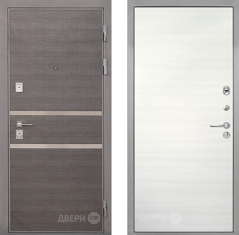 Входная Дверь Интекрон (INTECRON) Неаполь Гладкая Дуб сильвер поперечный 860x2050 мм