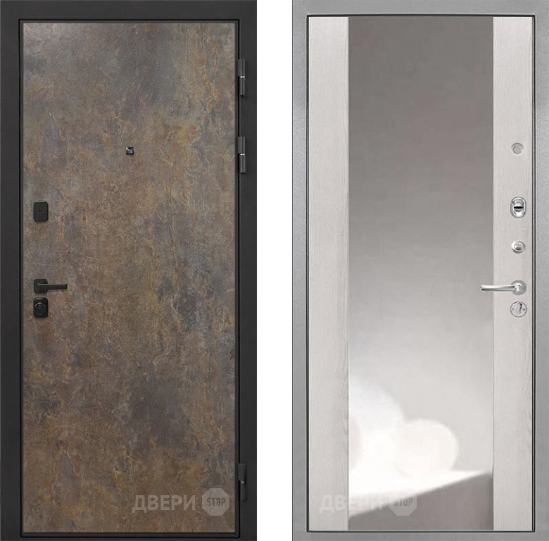Входная Дверь Интекрон (INTECRON) Профит Black Гранж ФЛЗ-516 Зеркало Сосна белая 860x2050 мм