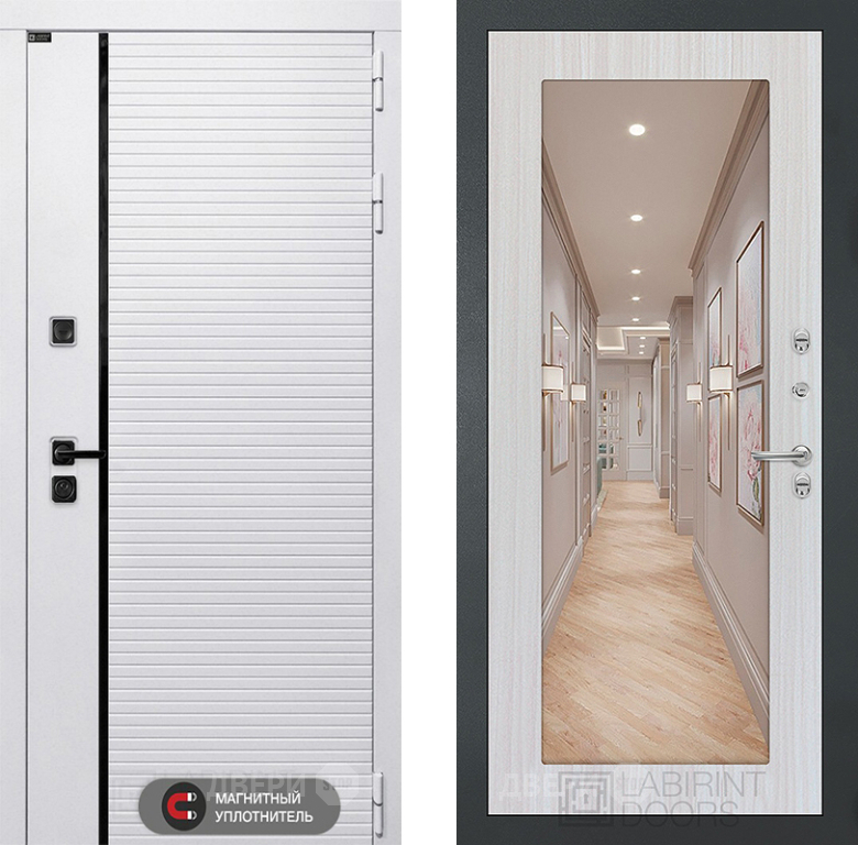 Входная Дверь Лабиринт (LABIRINT) Royal Зеркало 18 Сандал белый 860x2050 мм