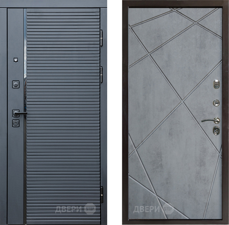 Входная Дверь Престиж Черная Линия Лучи Бетон темный 860x2050 мм