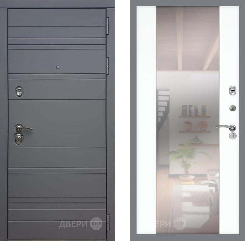Входная Дверь Рекс (REX) 14 силк титан СБ-16 Зеркало Силк Сноу 860x2050 мм