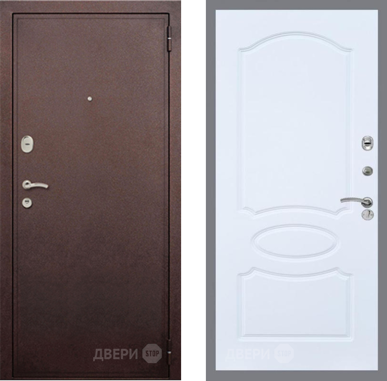 Входная Дверь Рекс (REX) 2 Медный Антик FL-128 Силк Сноу 860x2050 мм