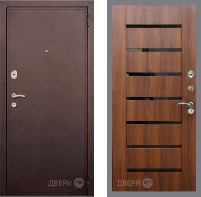 Входная Дверь Рекс (REX) 2 Медный Антик СБ-14 стекло черное Орех бренди 860x2050 мм