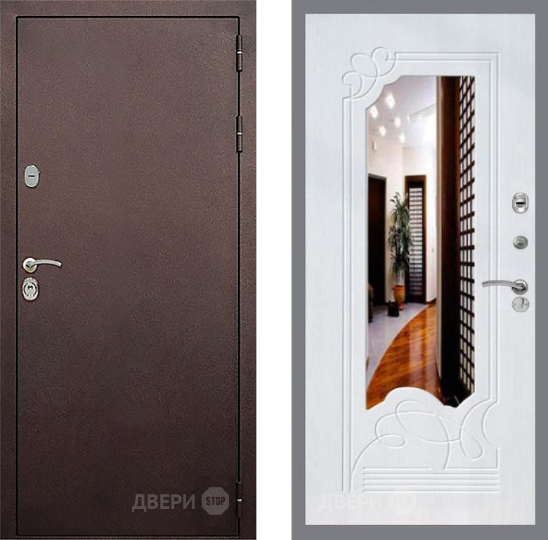 Входная Дверь Стоп КЛАССИК Медь ЗкркалоФЛ-147 Ясень белый 860x2050 мм