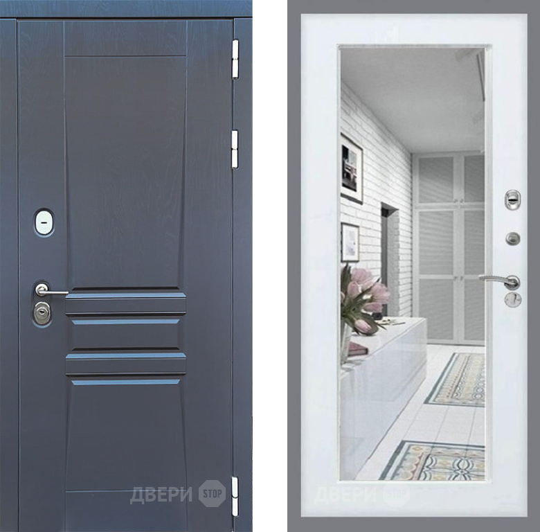 Входная Дверь Стоп ПЛАТИНУМ Зеркало Белый ясень 860x2050 мм