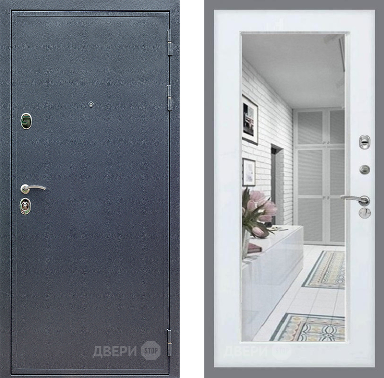 Входная Дверь Стоп СИЛЬВЕР Зеркало Белый ясень 860x2050 мм
