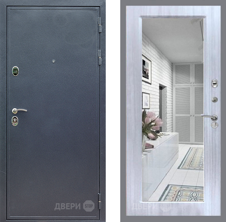 Входная Дверь Стоп СИЛЬВЕР Зеркало Сандал белый 860x2050 мм