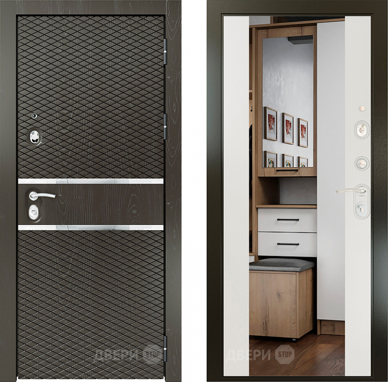 Входная металлическая Райтвер Плаза Шоколад с зеркалом Белый матовый в Старой Купавне 860х2050 мм